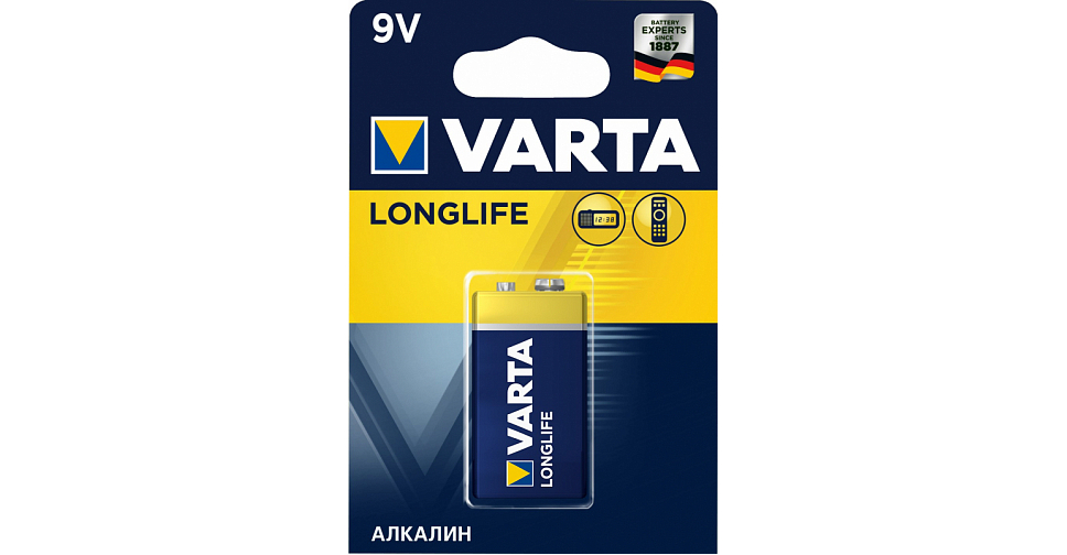 Батарейка 9V, Longlite E-Block (блистер 1шт,крона) Varta
