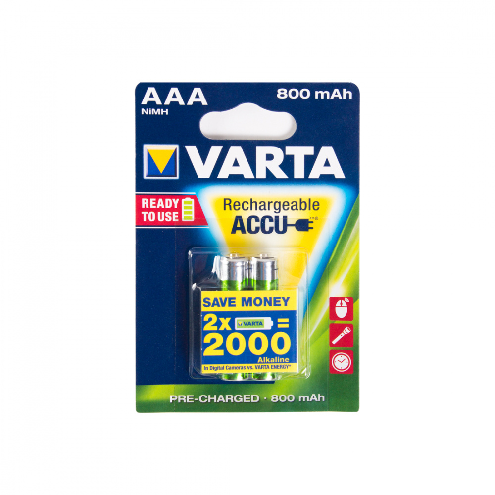 Аккумулятор, AAA, 800 mAh R2U, HR03, 1.2 V, (Блистер 2 шт) VARTA