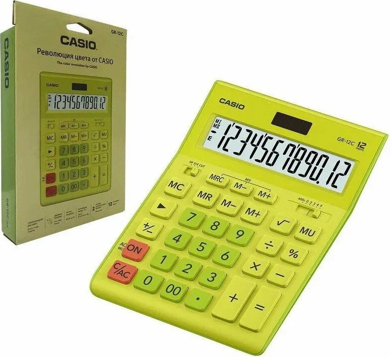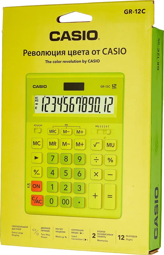Калькулятор 12 разрядов, 34,5 x 210 x 155мм, салатовый CASIO GR-12C-GN-W-EP