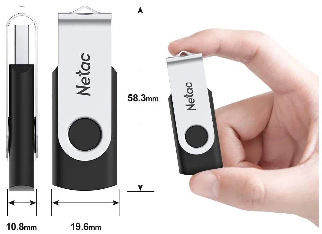 Флешку Netac U505 удобно всегда носить при себе благодаря компактным размерам 0,6х1,7х3,6 см и весу всего в 2 г.