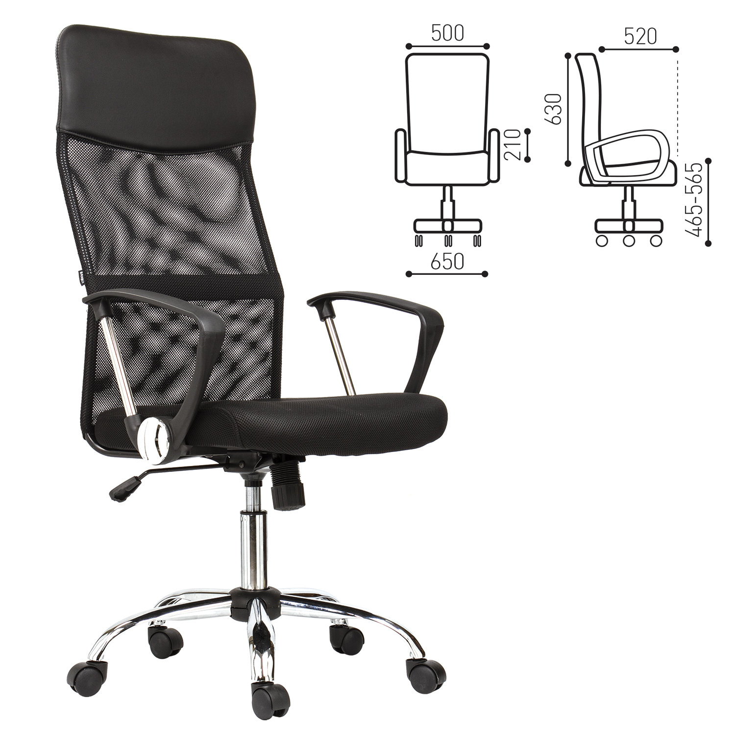 Кресло офисное "Flash MG-302", с подлокотниками, хром, черное, "Brabix"
