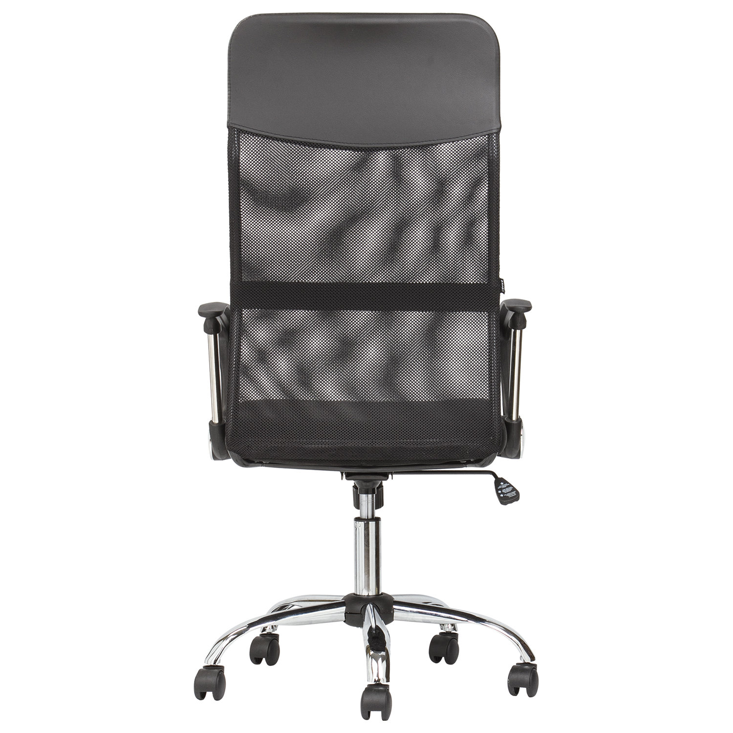 - Спинка кресла выполнена из прочного сетчатого акрила. Материал обладает высокой воздухопроницаемостью, легко чистится, способен подстраиваться под физиологические изгибы спины, при этом сохраняет форму и не растягивается. Верхняя, наиболее подверженная износу, часть спинки изготовлена из экокожи. Помимо этого в области поясницы предусмотрена специальная вставка из эластичной ленты для дополнительной поддержки спины.