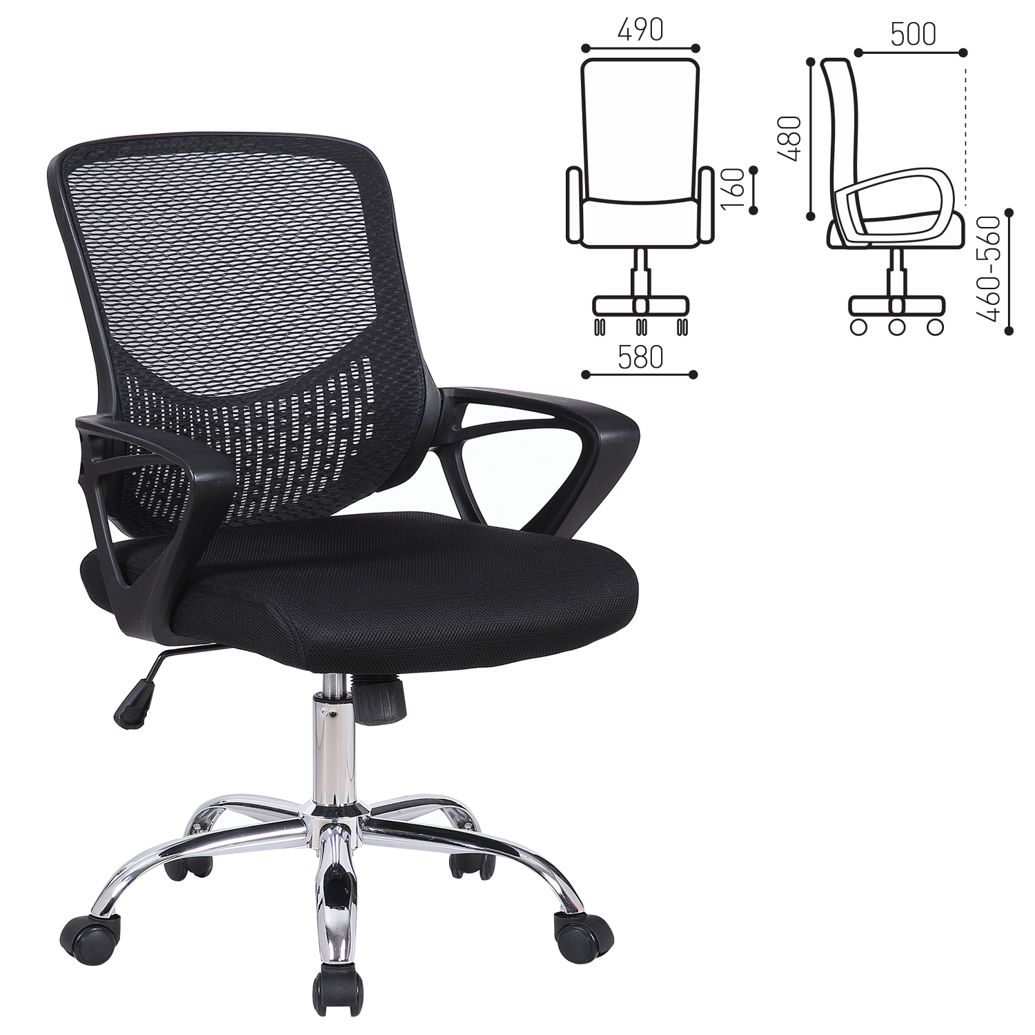 Кресло офисное "Next MG-318", с подлокотниками, хром, черное, "Brabix"