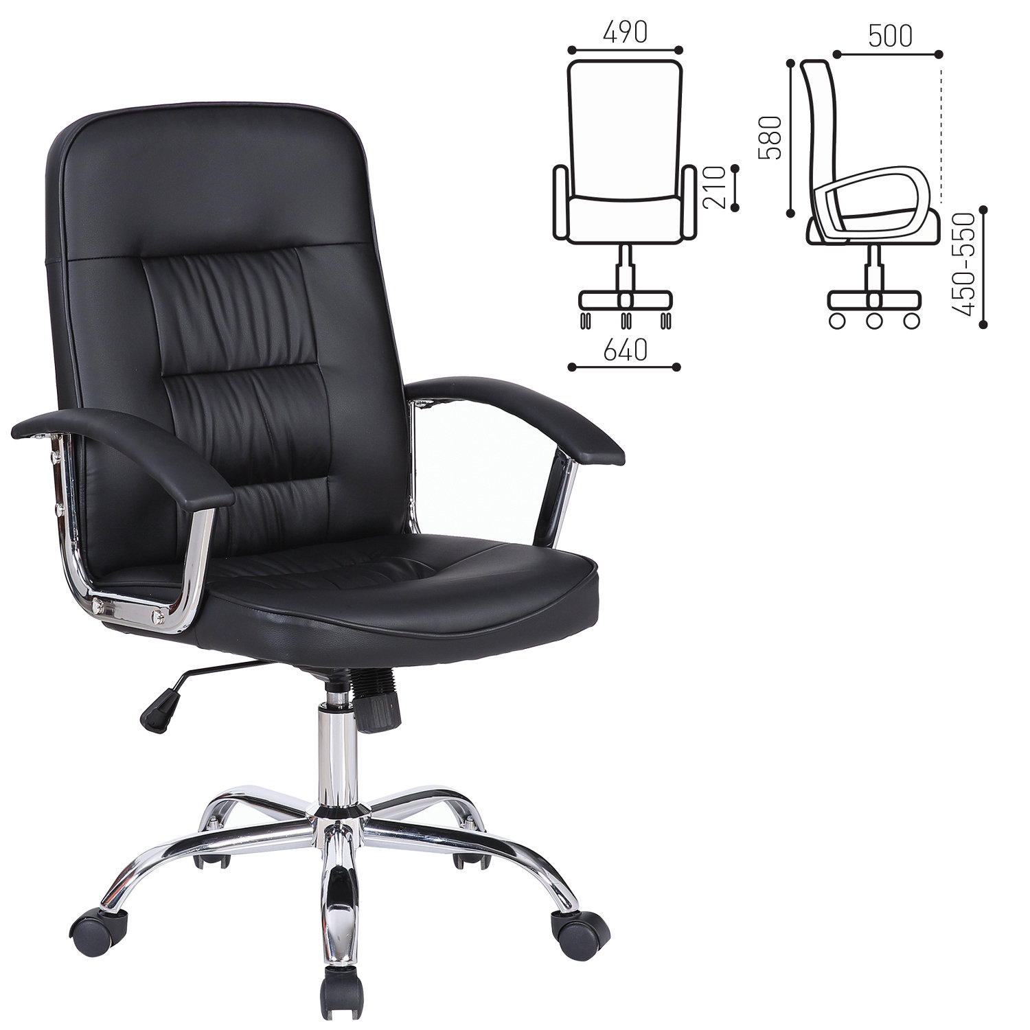 Кресло офисное "Bit EX-550", хром, экокожа, черное, "Brabix"