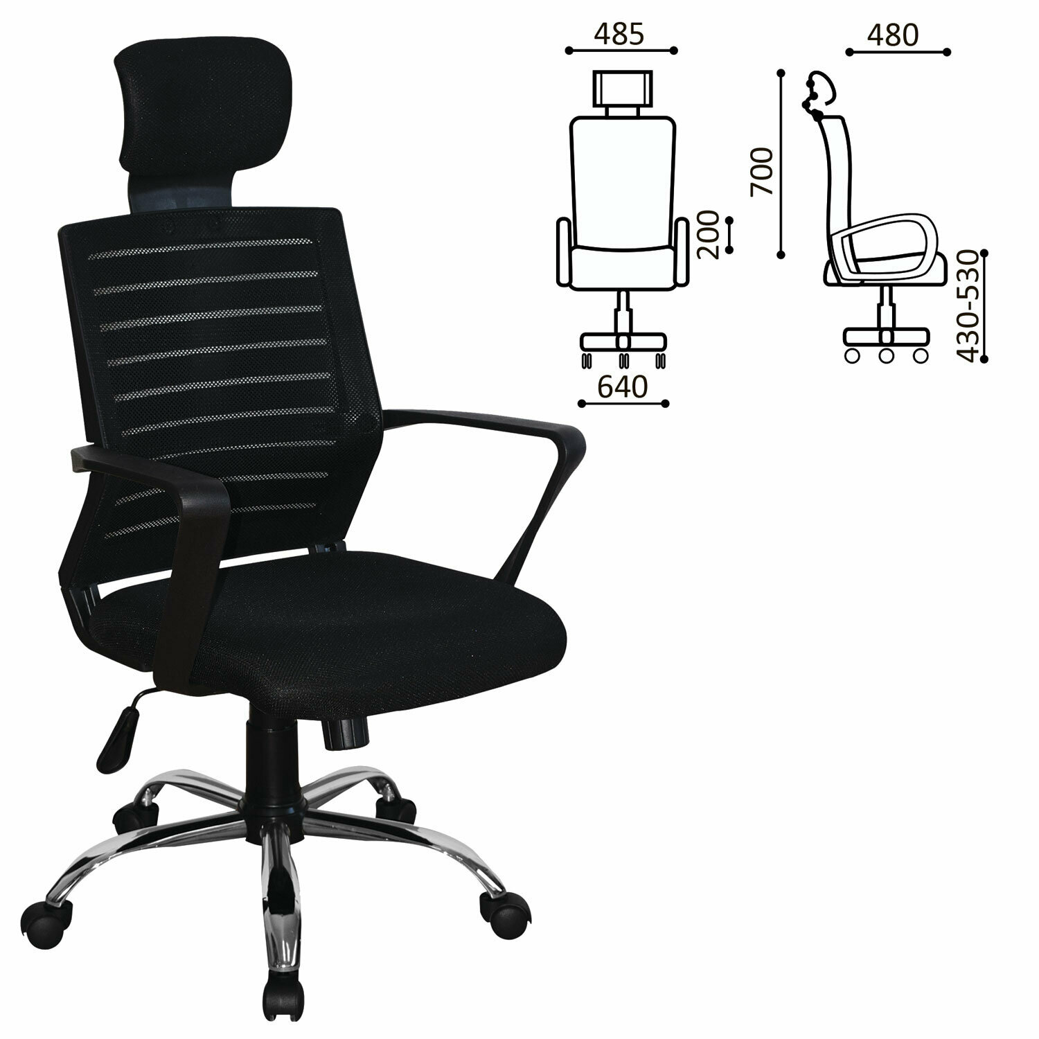 Кресло офисное "Victory MG-016", подголовник, хром, черное, "Brabix"
