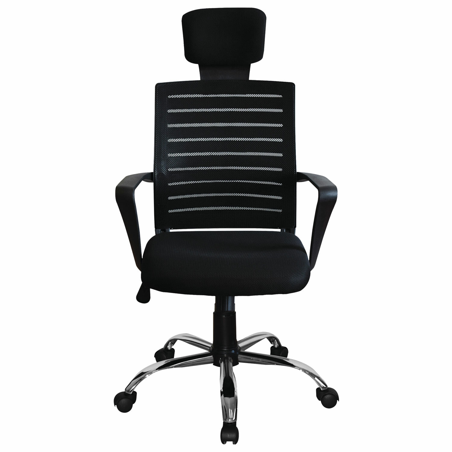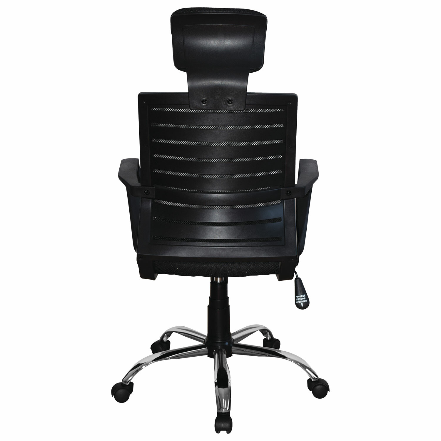 Высокая сетчатая спинка и подголовник, выраженная поддержка поясницы, прочные пластиковые подлокотники, хромированное пятилучие гарантируют комфортное долгосрочное использование.