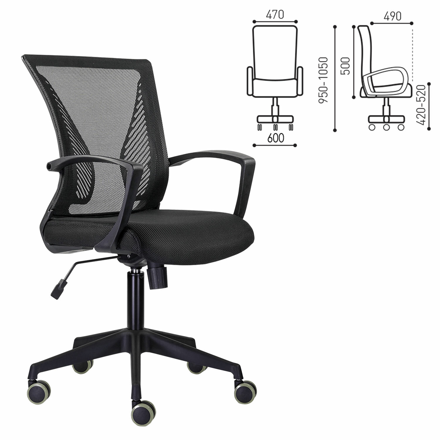 Кресло офисное "Wings MG-309", пластик черный, сетка, черное, "Brabix"