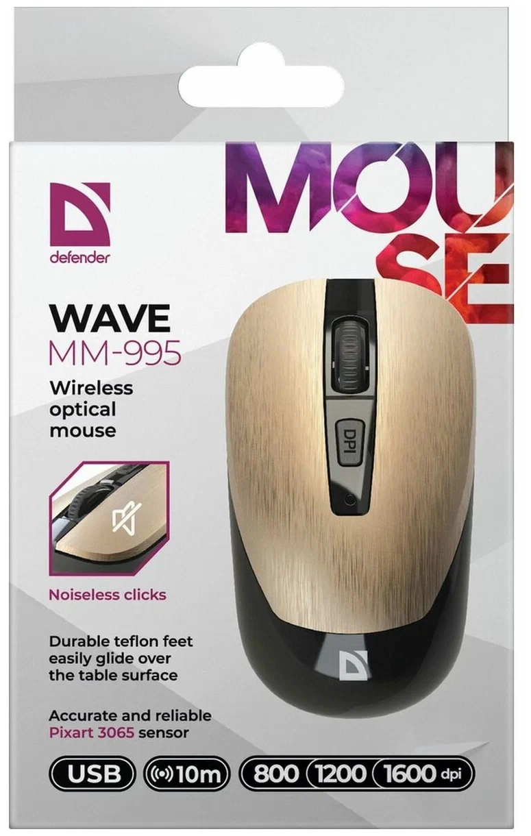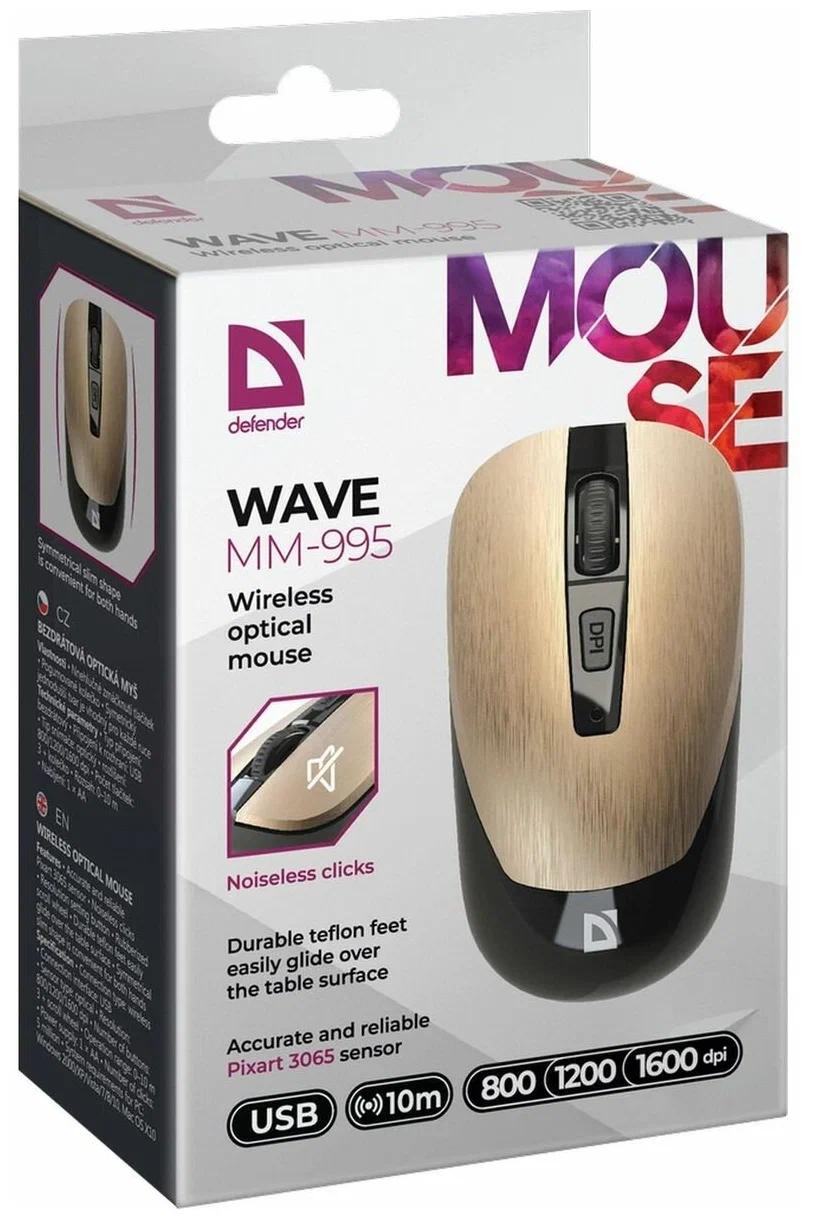 Мышь беспроводная Defender Wave MM-995 бесшумная, бронза