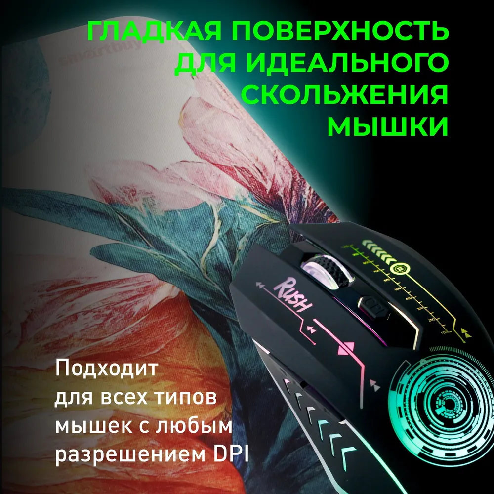 Стильный и удобный коврик Smartbuy Flowers размера S обеспечивает точное отслеживание движений мыши и комфорт при работе или игре.