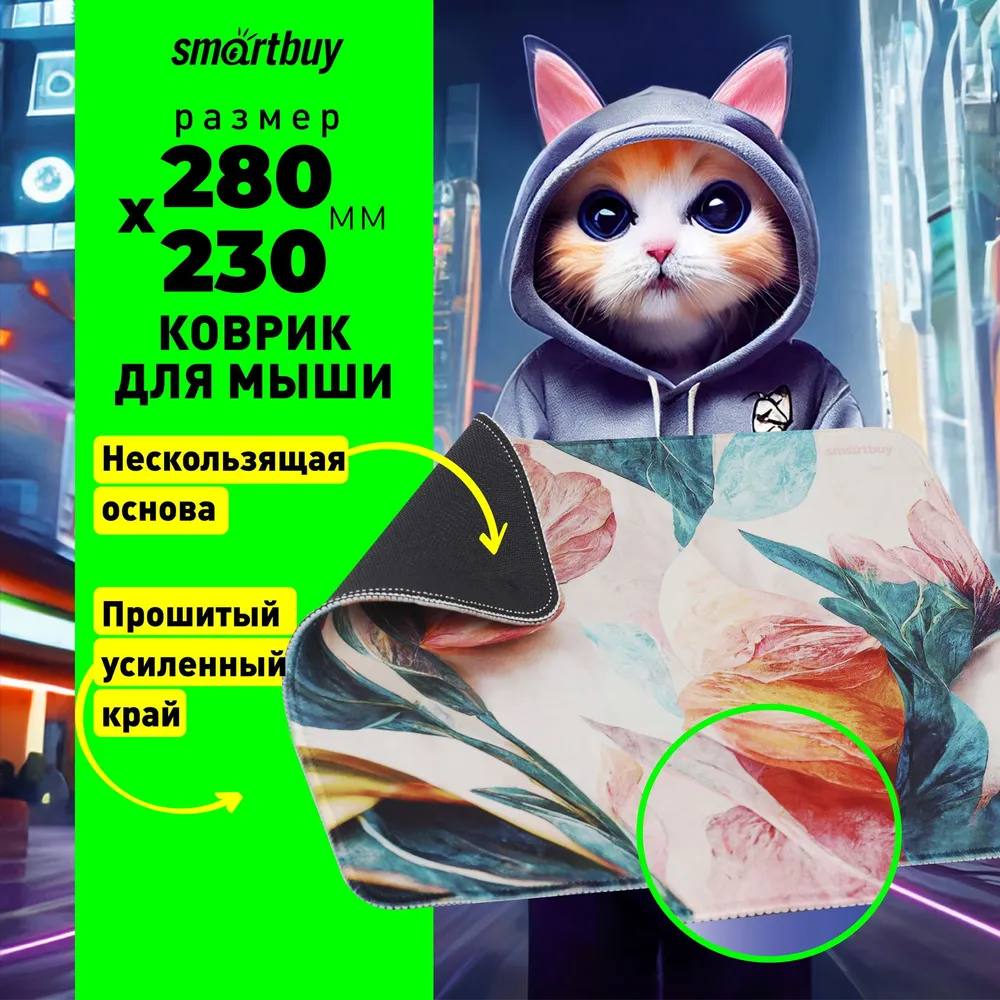 Коврик для мышки Smartbuy Flowers S 280х230х3 мм резиновая основа+тканевая поверхность