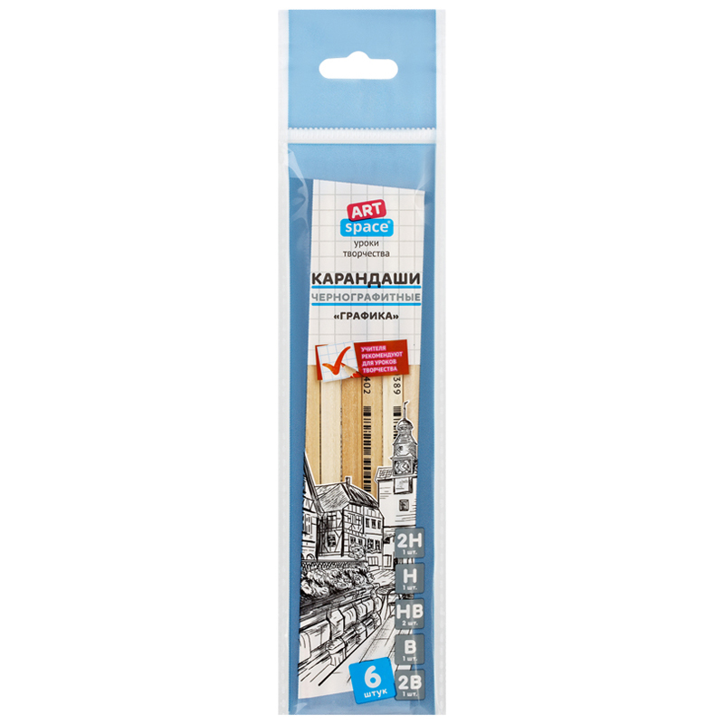 Набор карандашей чернографитовых 2Н-2B, 6шт, "Графика" ArtSpace
