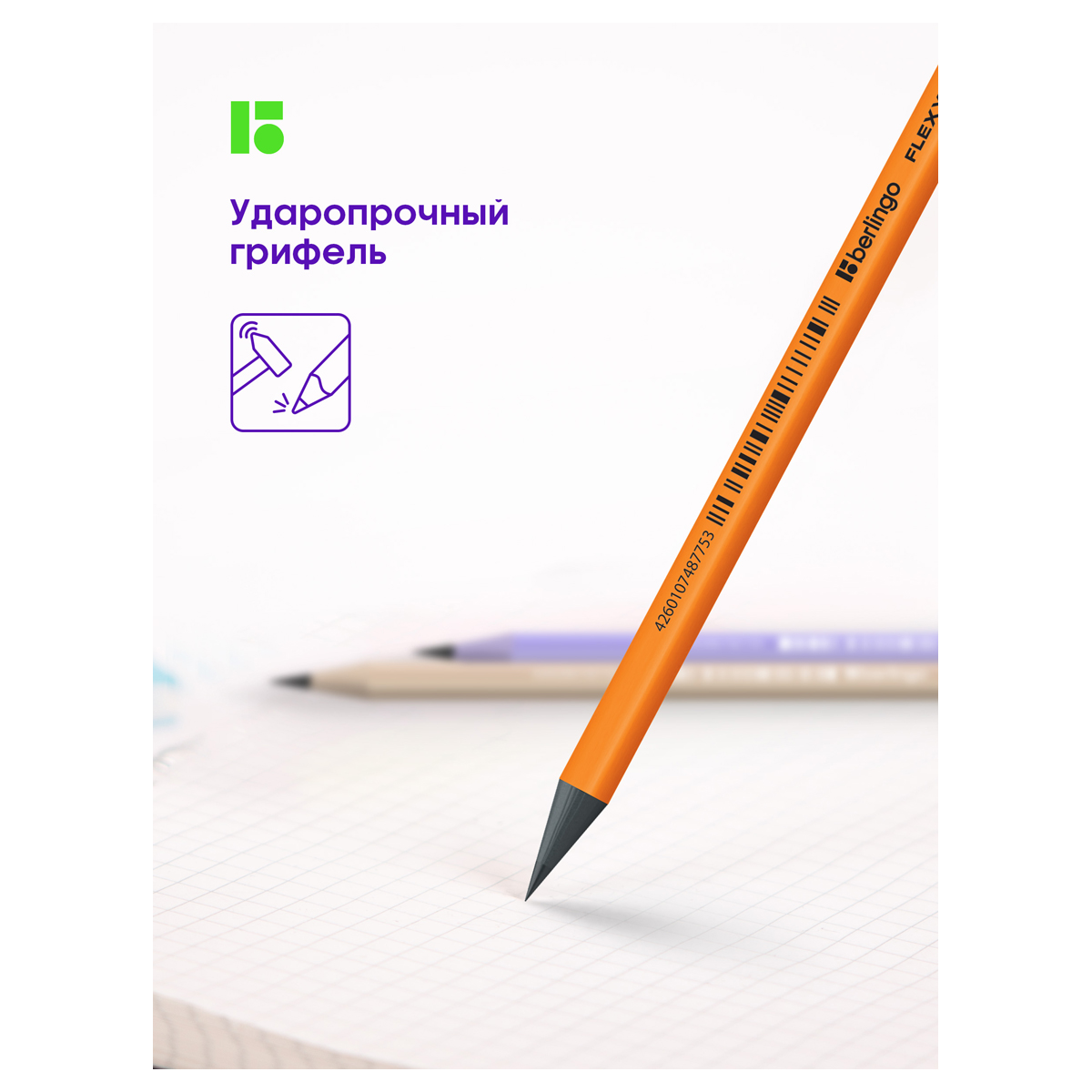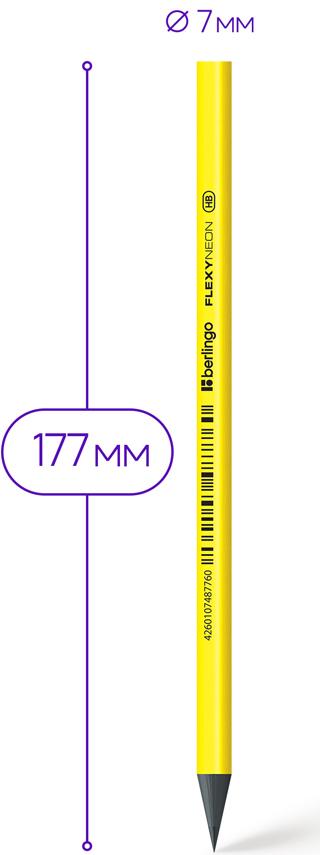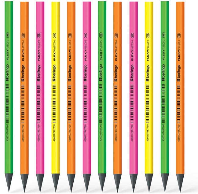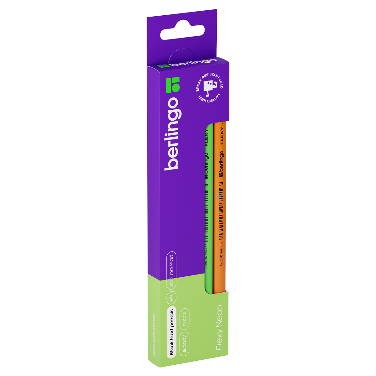 Карандаш простой HB, без ластика, пластик, "Flexy Neon" Berlingo