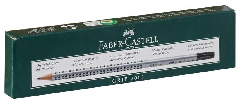 Карандаш простой HB, с ластиком, трехгранная форма, антискользящая зона, Faber-Castell