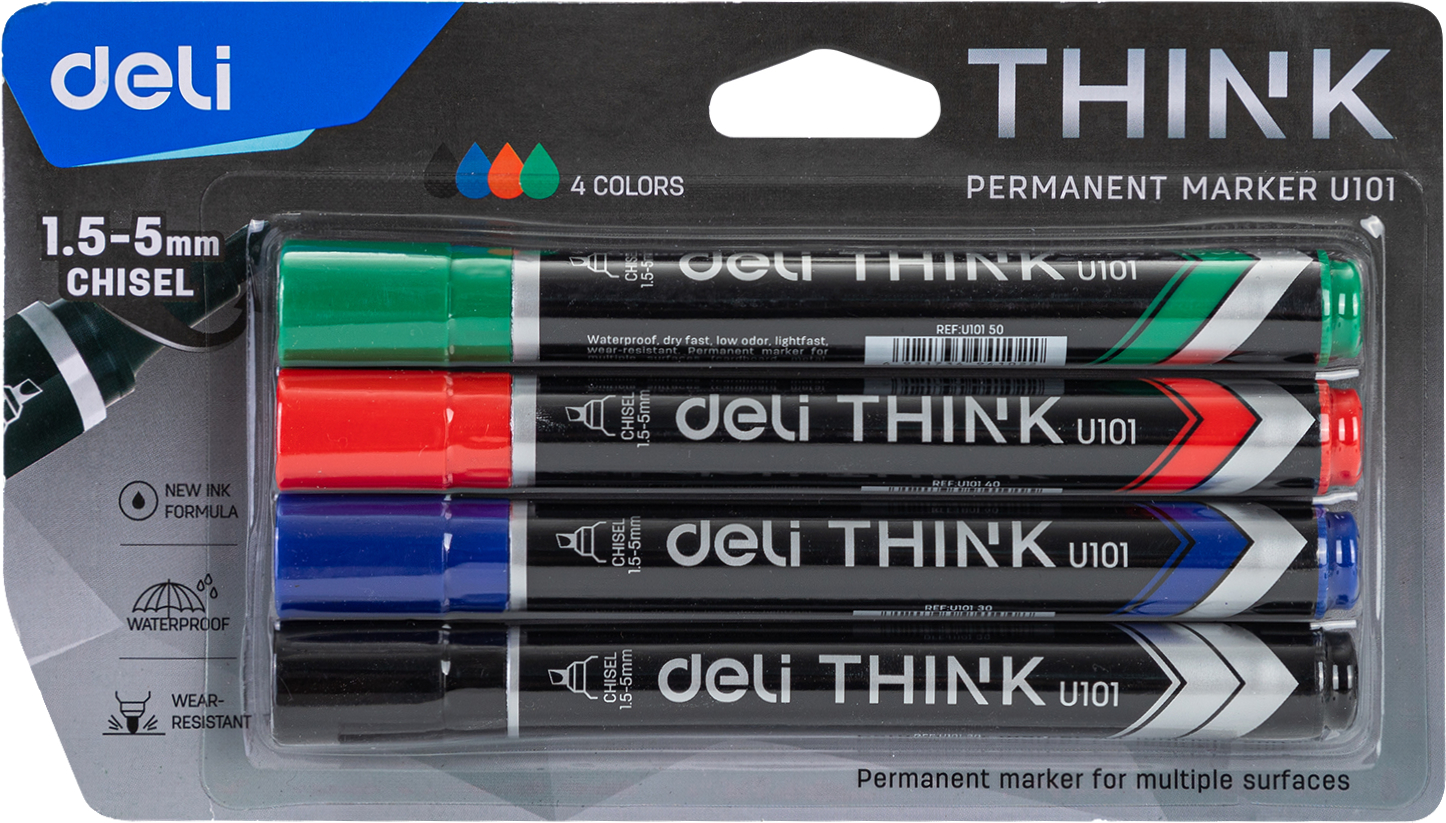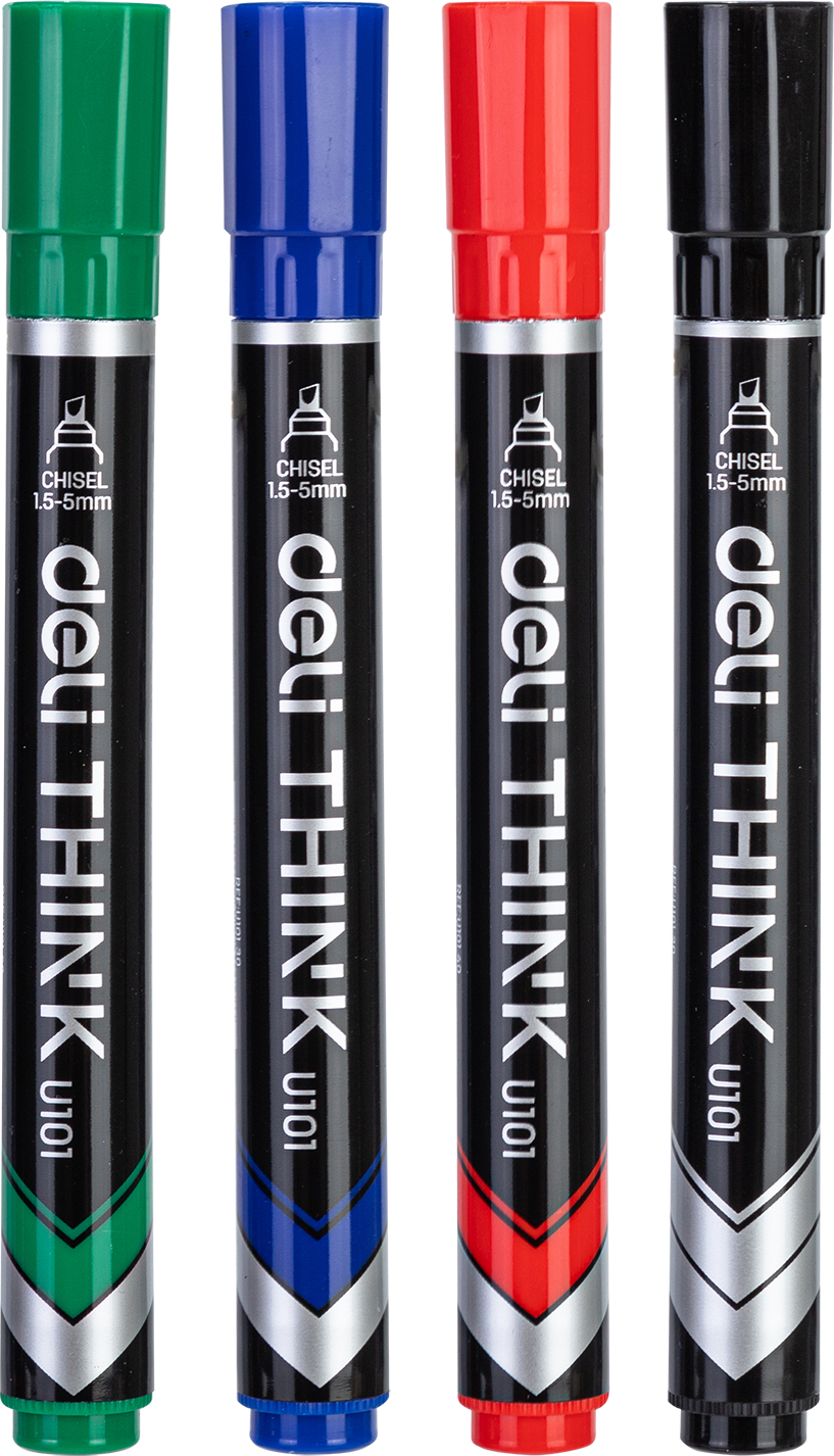 Маркер перманентный 1,5 - 5 мм, скошенный наконечник, набор 4 цвета, Deli