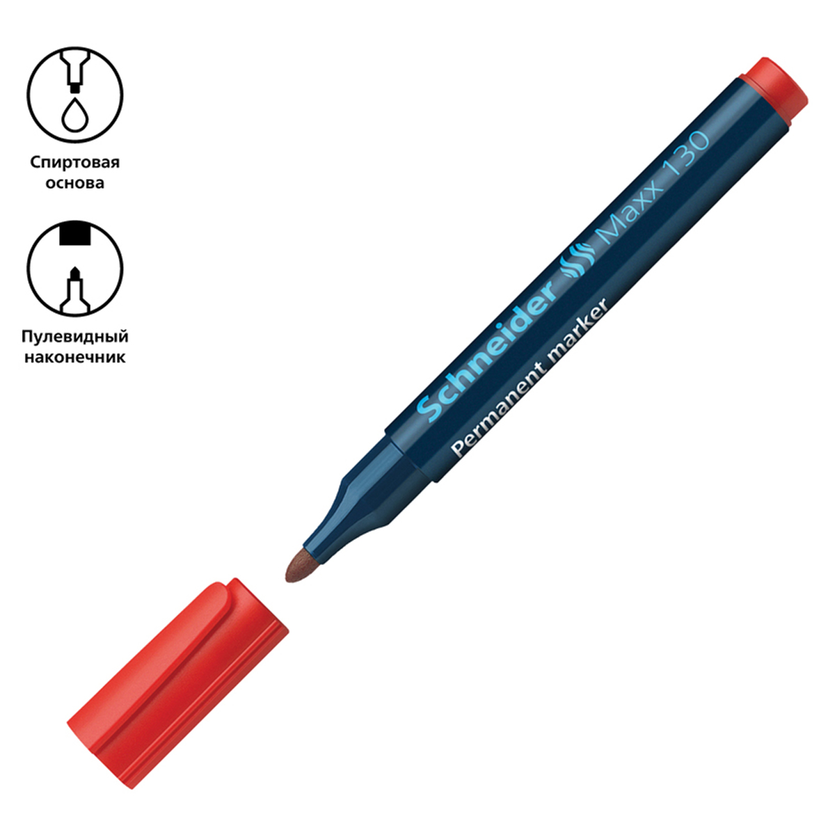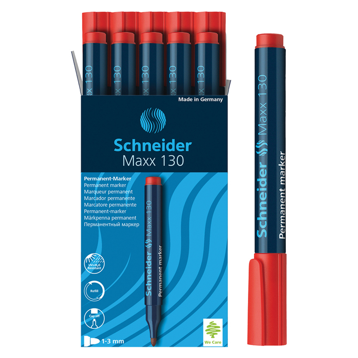 Маркер перманентный Maxx 130, 1-3 мм, круглый наконечник, красный Schneider