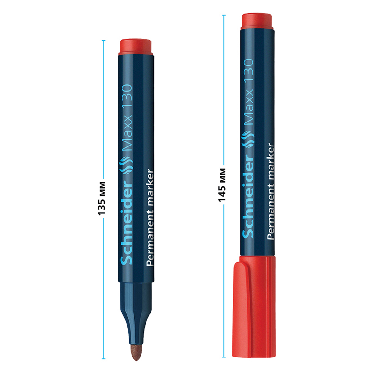 Перманентный маркер Schneider Maxx 130 с чернилами на спиртовой основе подходит для большинства твёрдых поверхностей. Маркер представлен с пулевидным пишущем узлом.