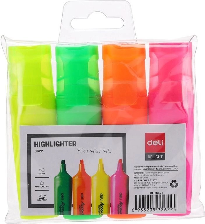 Маркер текстовой 1-5 мм, скошенный наконечник, 4 цвета в наборе DELI