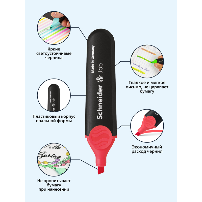 Маркер текстовой 0.4мм, скошенный наконечник, красный, Job Schneider