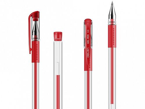Ручка гелевая, 0,5мм, красная, "Deli" 6600