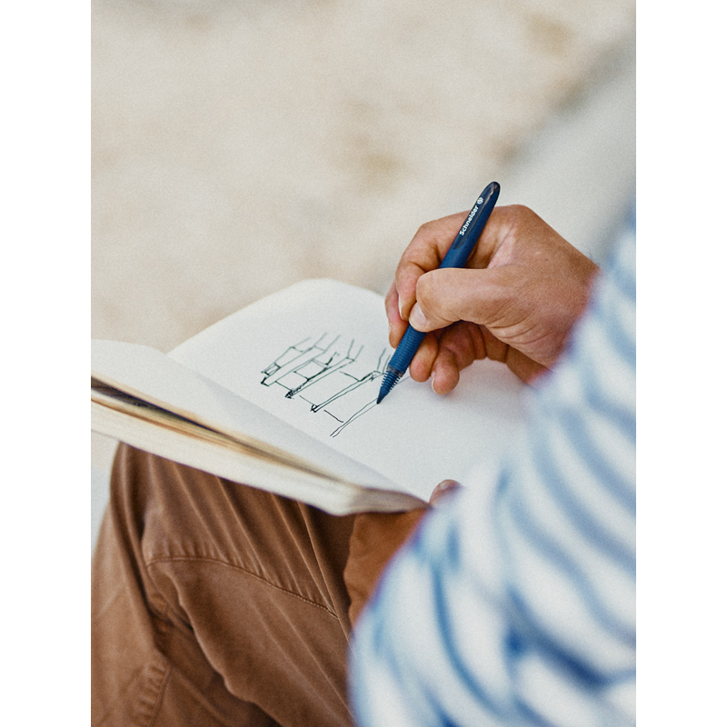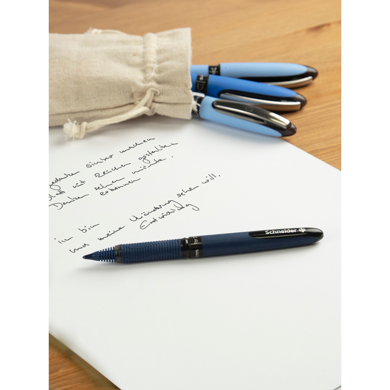 Ручка-роллер Schneider "One Business" с круглым прорезиненным корпусом и металлическим клипом.