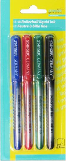 Набор ручек роллерных, 0.5мм, 4цвета, Stanger