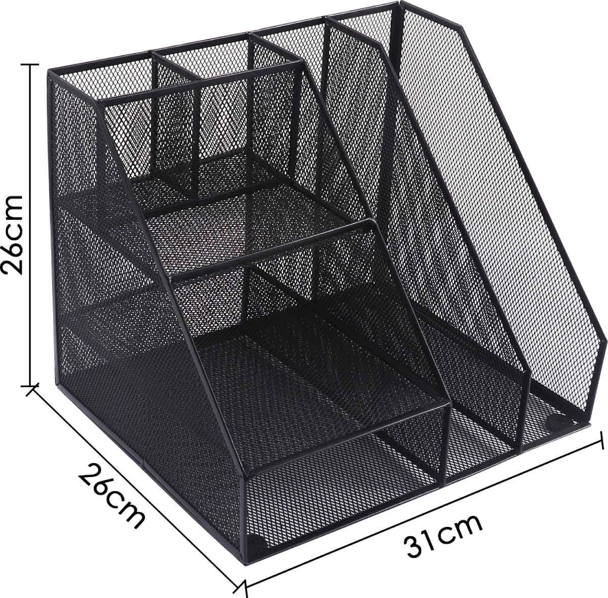 Подставка для канц.принадлежностей, 7 отделов, черная, сетчатая, металл Foska