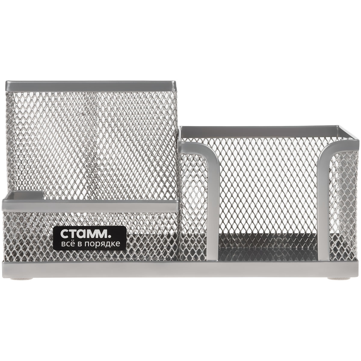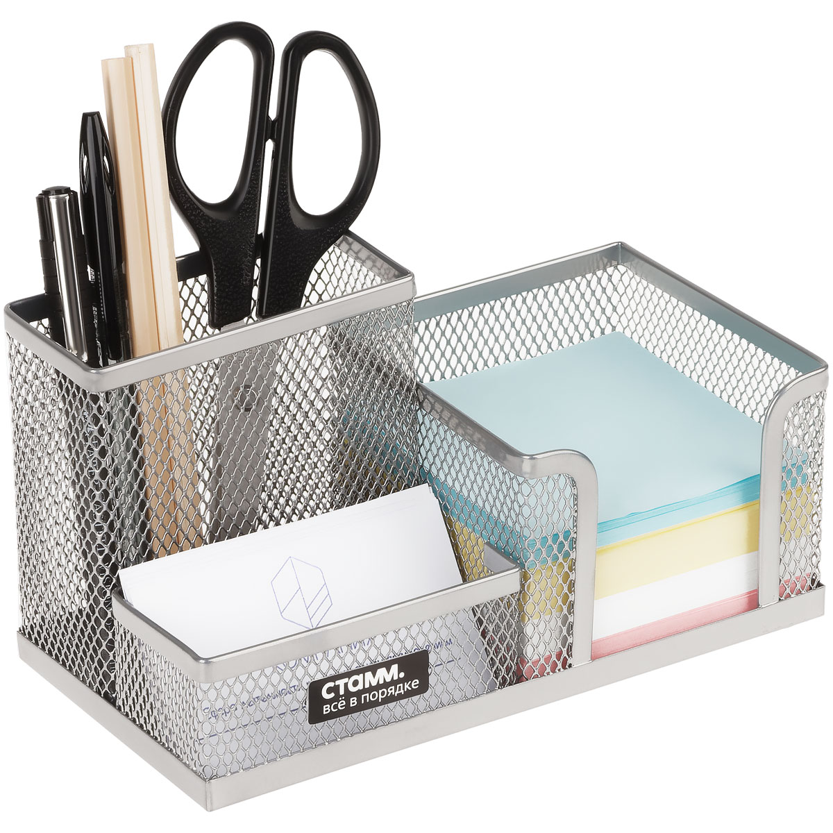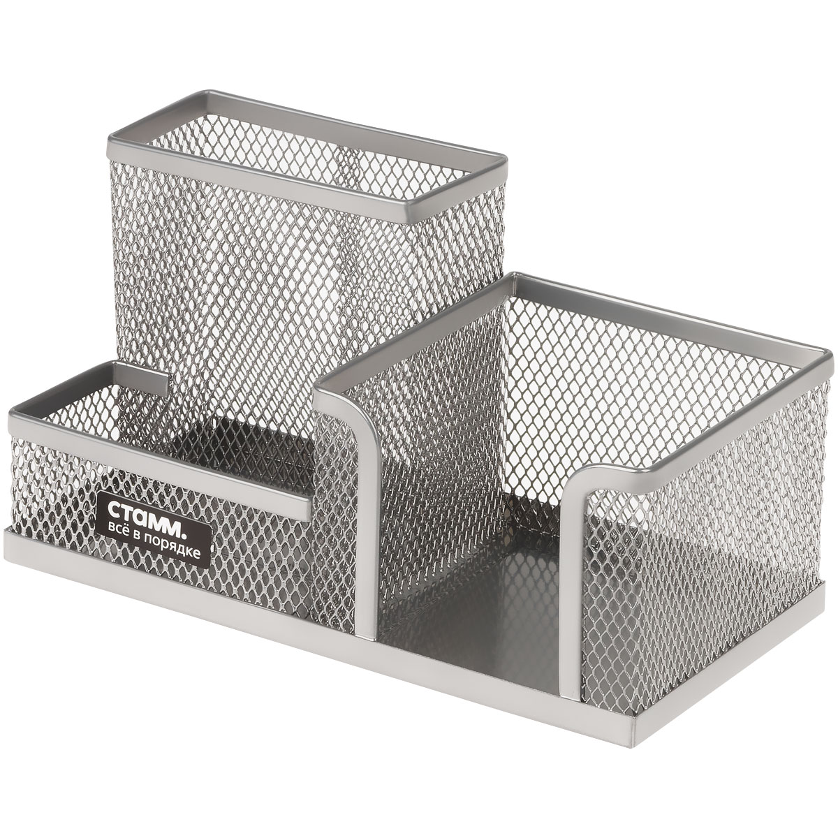 Подставка для канц.принадлежностей, 3 отдела, серебристая, сетчатая, металл Стамм