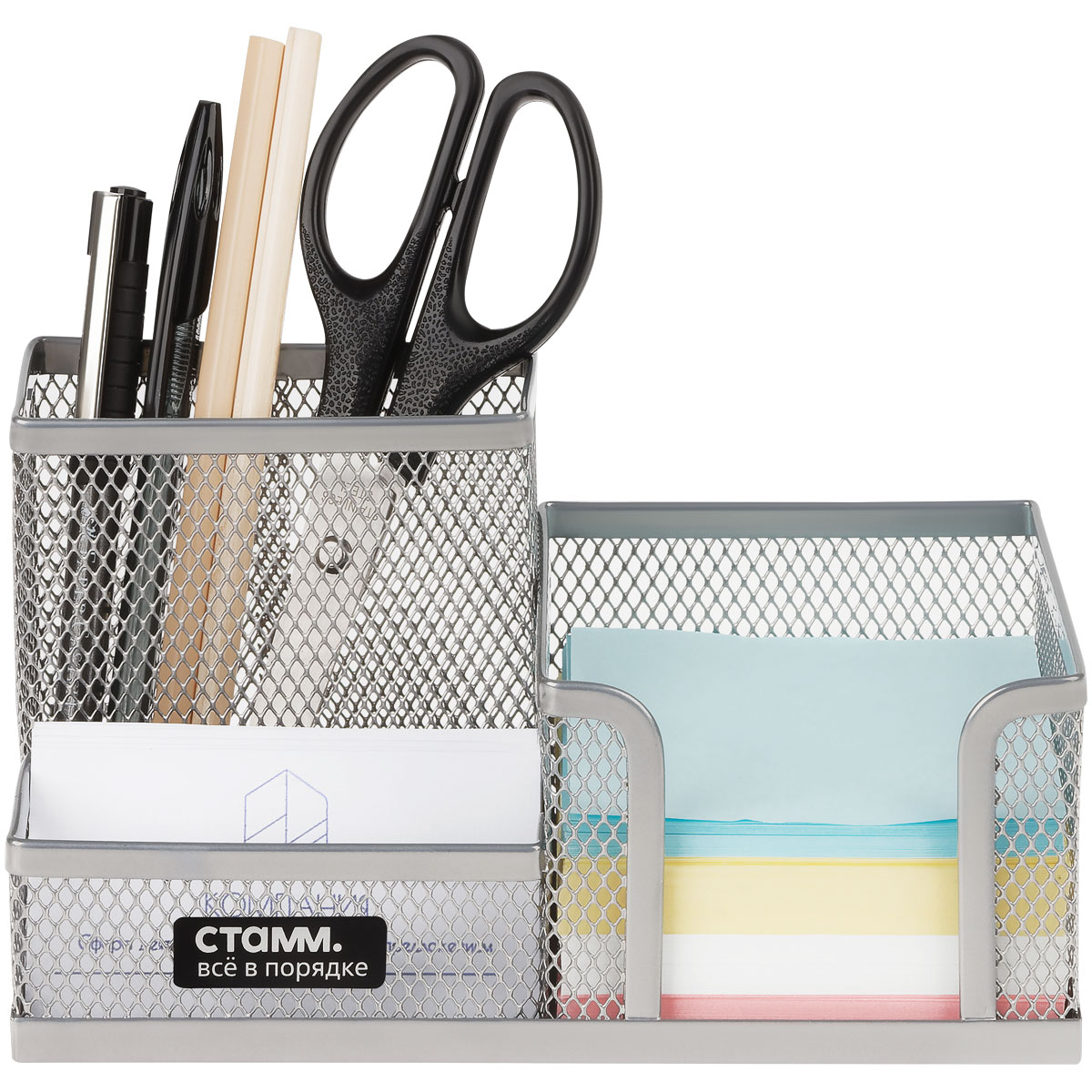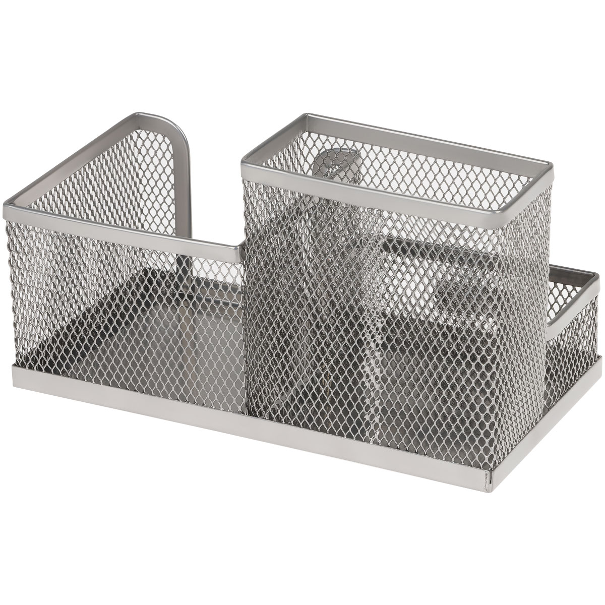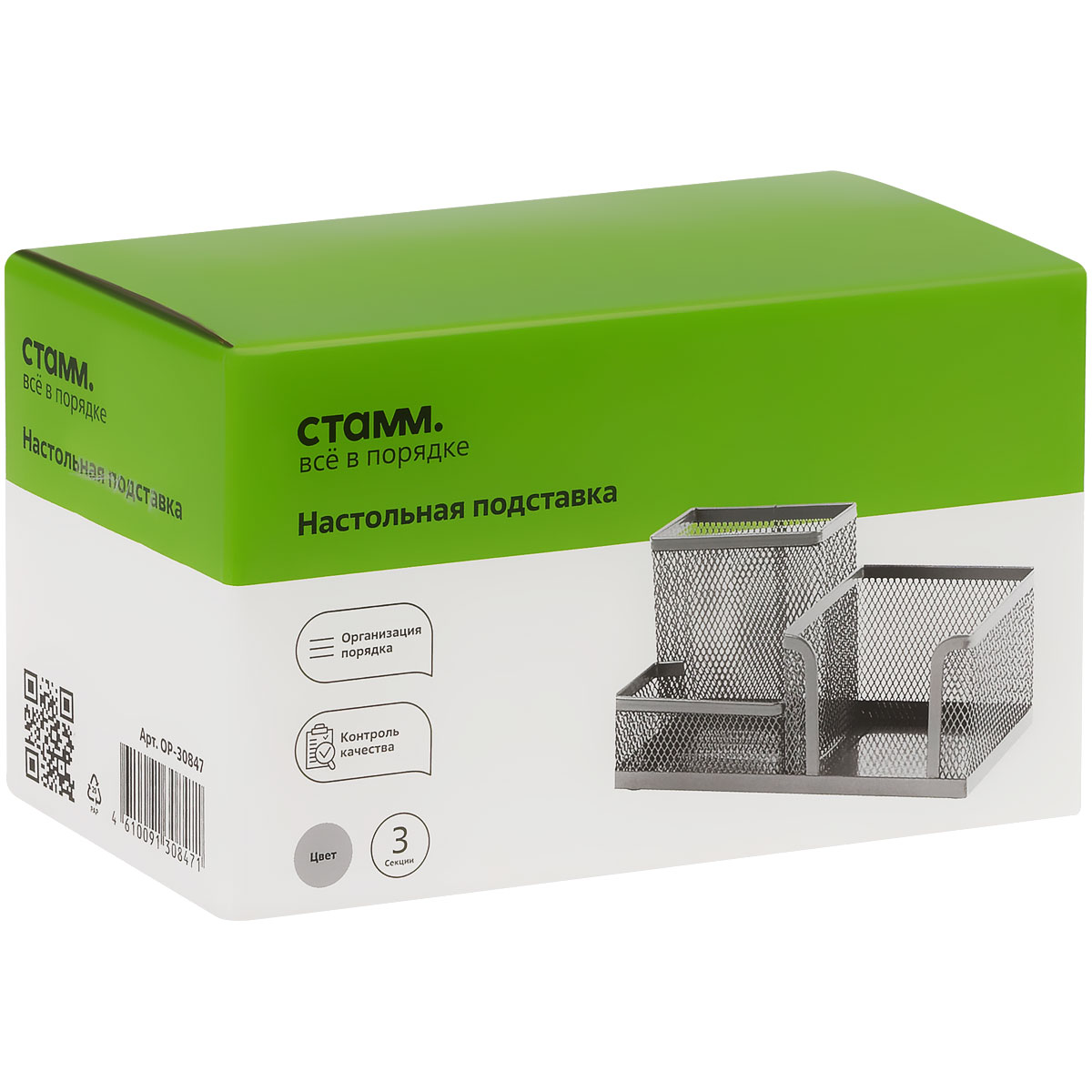 Подставка для канц.принадлежностей, 3 отдела, серебристая, сетчатая, металл Стамм