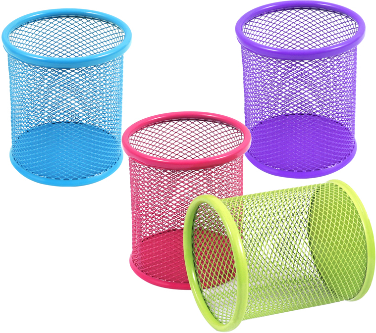 Элегантный стакан для ручек выполнен из прочного металла и имеет стильный сетчатый дизайн.