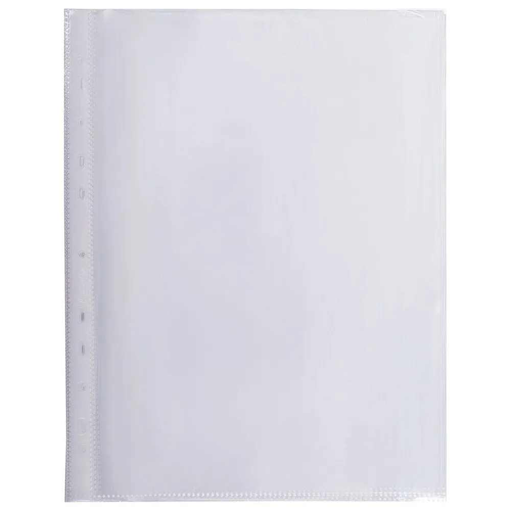 Перфопапки формата А4 с вертикальным размещением содержат универсальную перфорацию, а также имеют гладкую поверхность и прочные швы. Файлы являются незаменимым атрибутом в офисе, позволяют систематизировать документы и обеспечивают их сохранность на долгое время. Изготовлены из прочной пленки толщиной 60 мкм. В комплект входит 100 перфопапок.