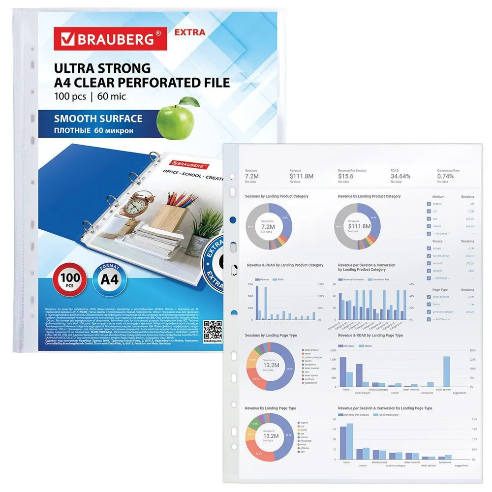 Файл прозрачный A4, 0,060мм., в уп.100штук, Brauberg EXTRA