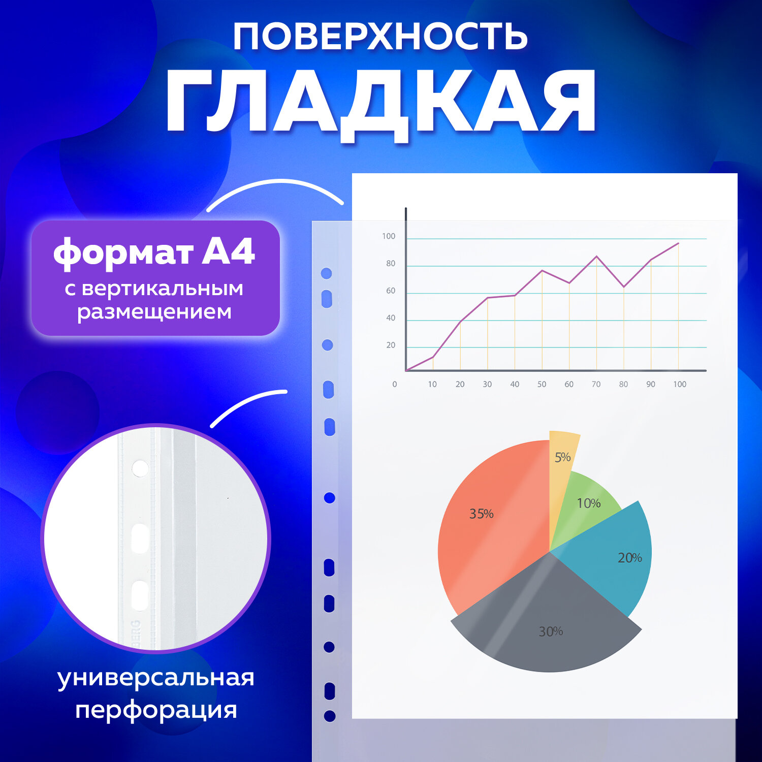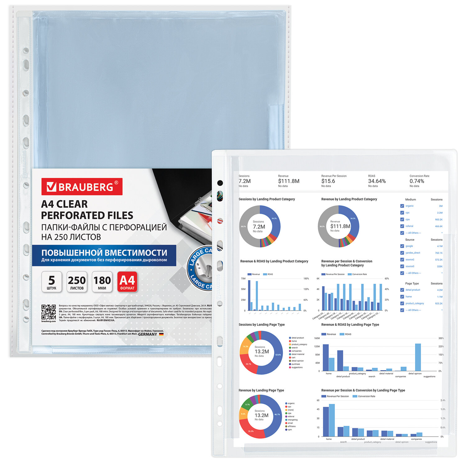 Перфорированные папки-файлы BRAUBERG большой вместимости предназначены для использования в архивных папках.
