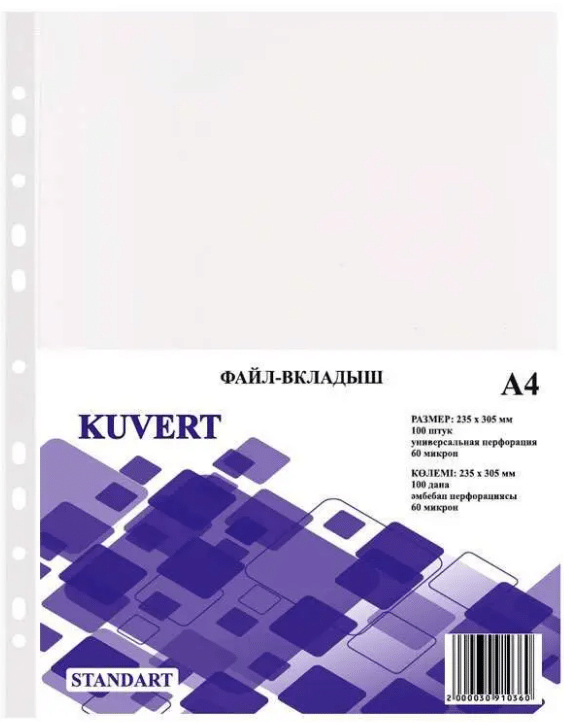 Файл прозрачный A4, 0,060мм KUVERT, 100 шт.в уп.
