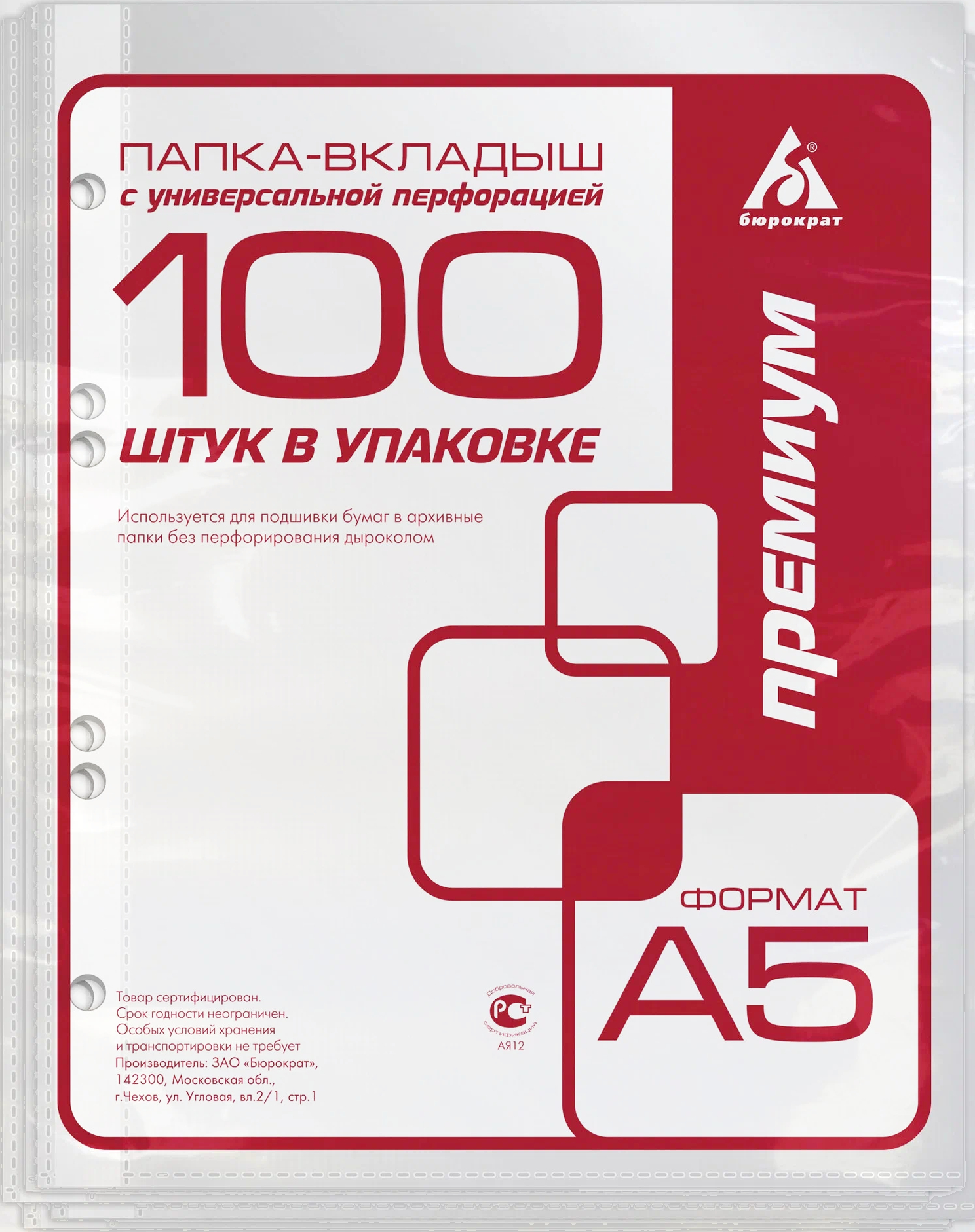 Файлы-вкладыши "Бюрократ Премиум" предназначены для хранения и защиты документов формата А5.