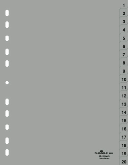 Разделитель 1-20, А4, 20л, пластик, серый Durable