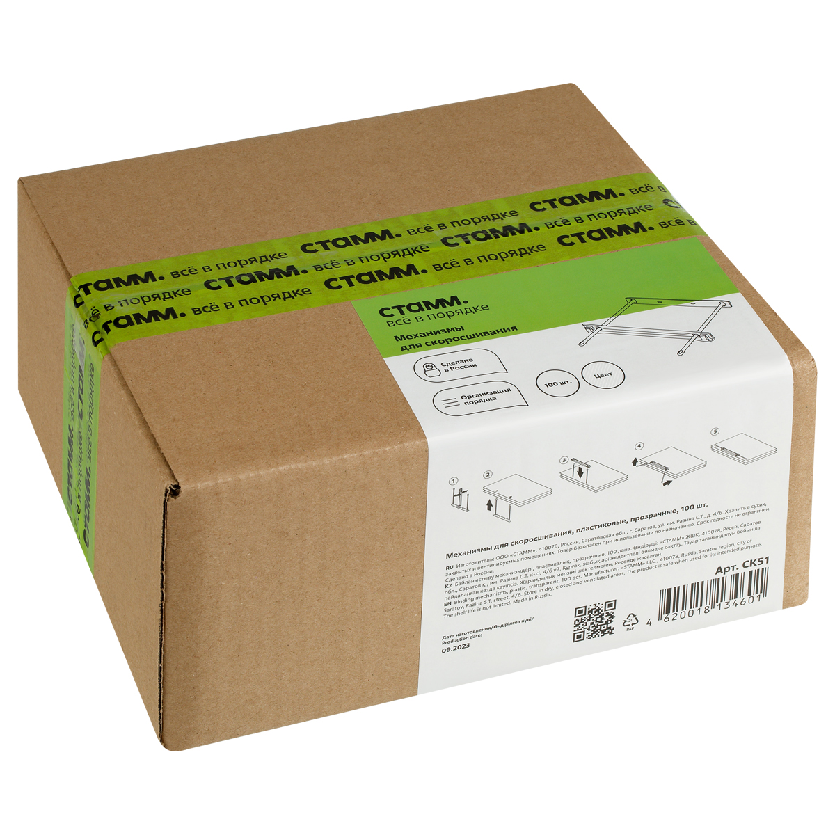 Механизм скоросшивателя, пластиковый прозрачный, 100 шт в уп. Стамм