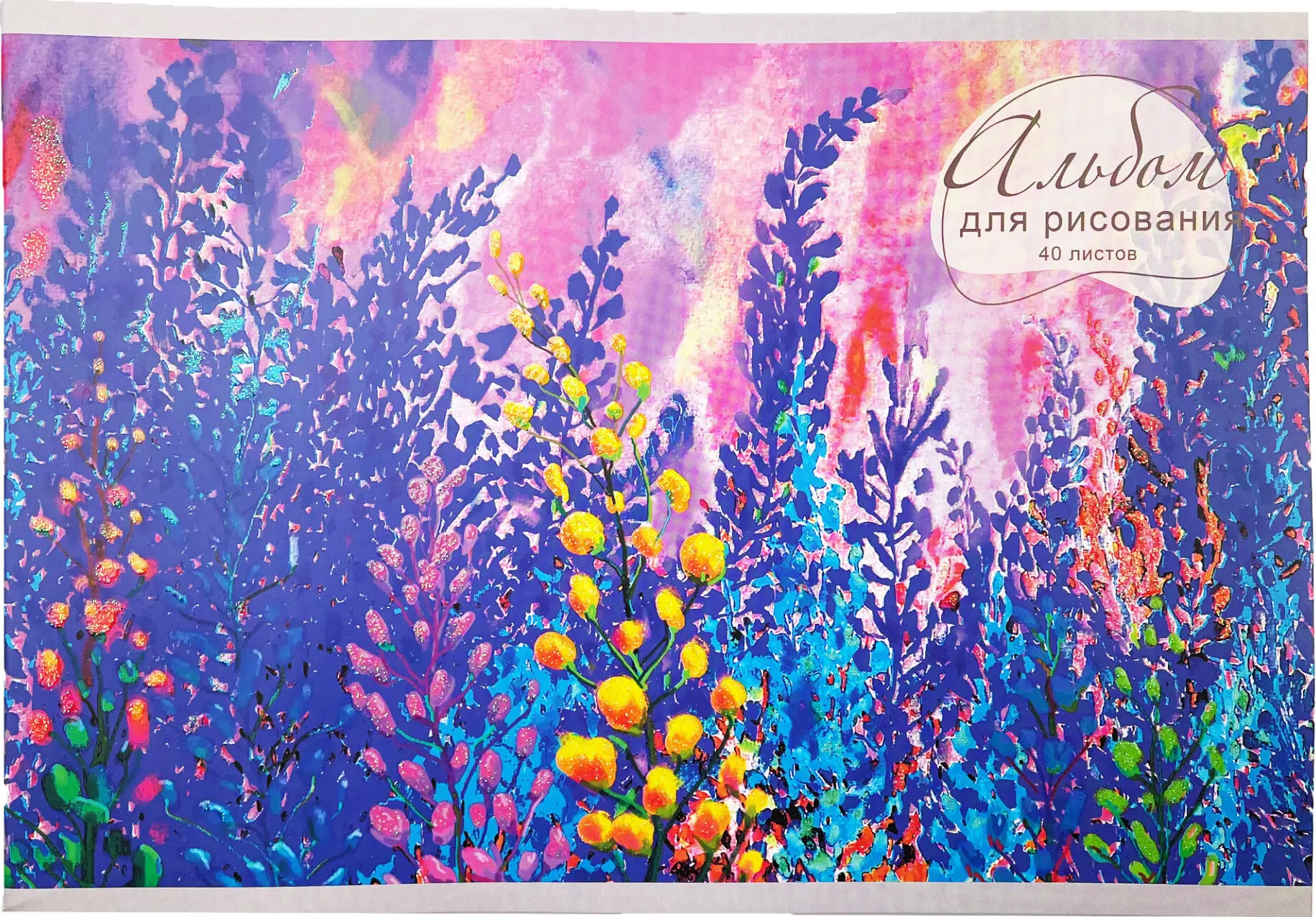 Альбом для рисования А4, 40л, "Цветочный пейзаж", на скрепке Эксмо