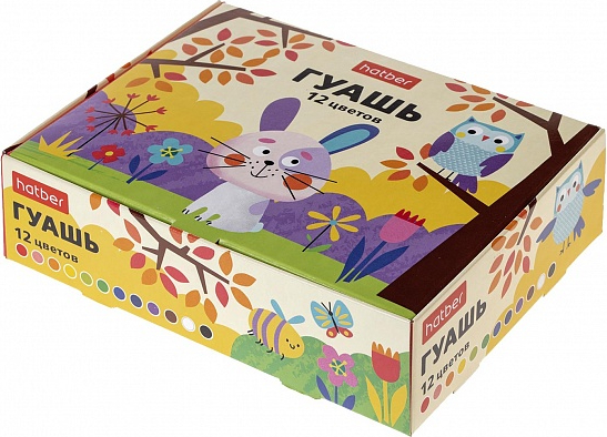 Гуашь 12 цветов, 25 мл.набор, картонная коробка "Зайчик", "Hatber"
