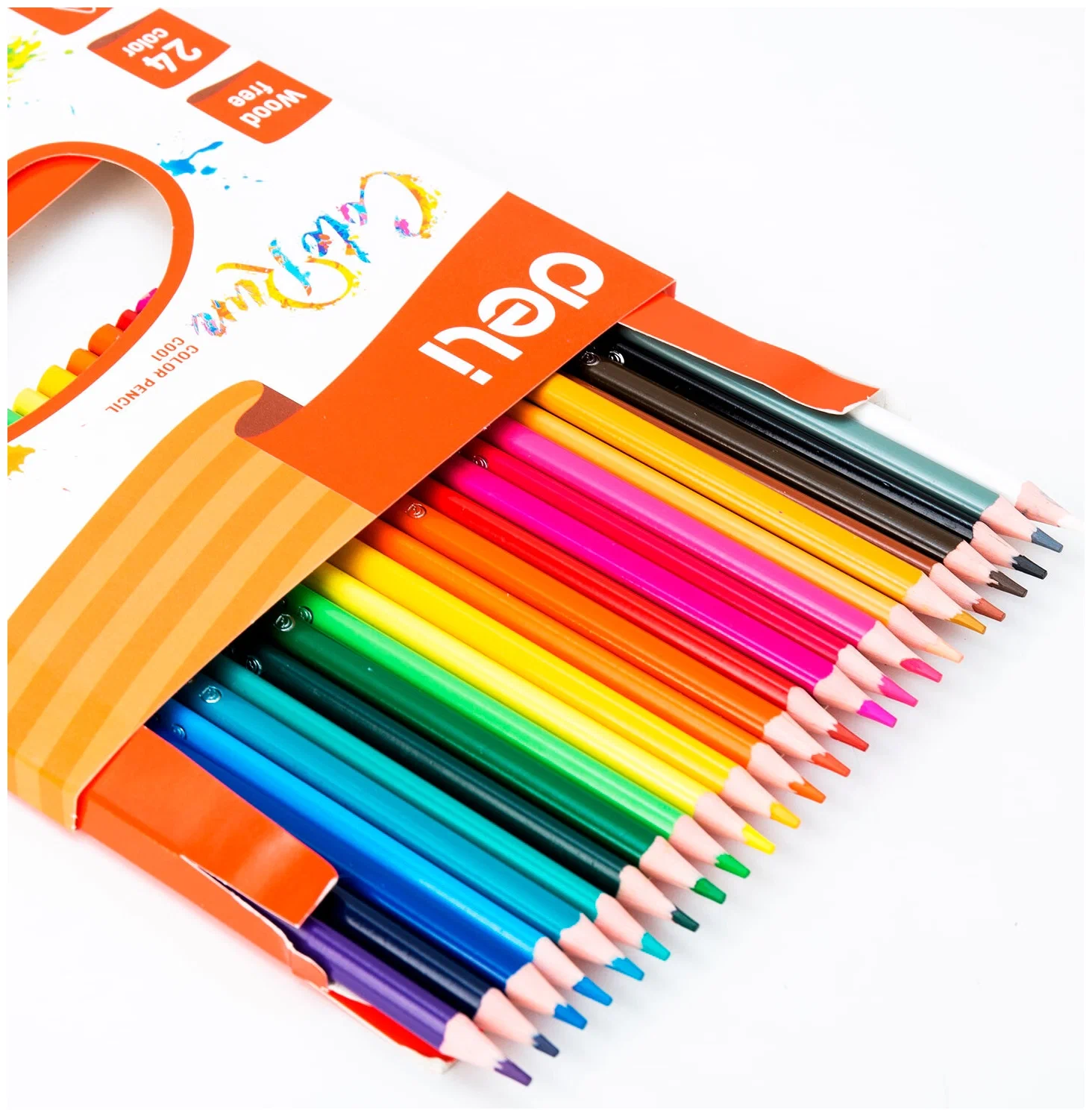 Трехгранные цветные карандаши Deli ColoRun 24 цвета мягко пишут и легко затачиваются.