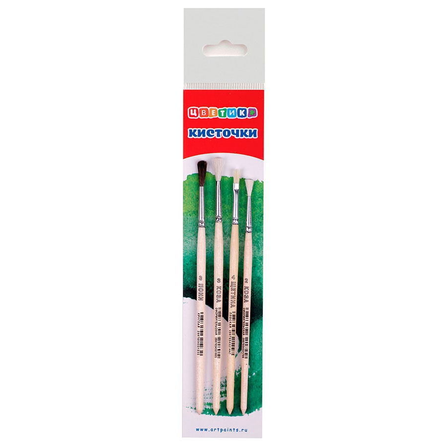 Набор кистей Невская Палитра "Цветик" № 8, 4 штуки в уп., (пони № 3, коза № 2 и № 3, щетина № 4)