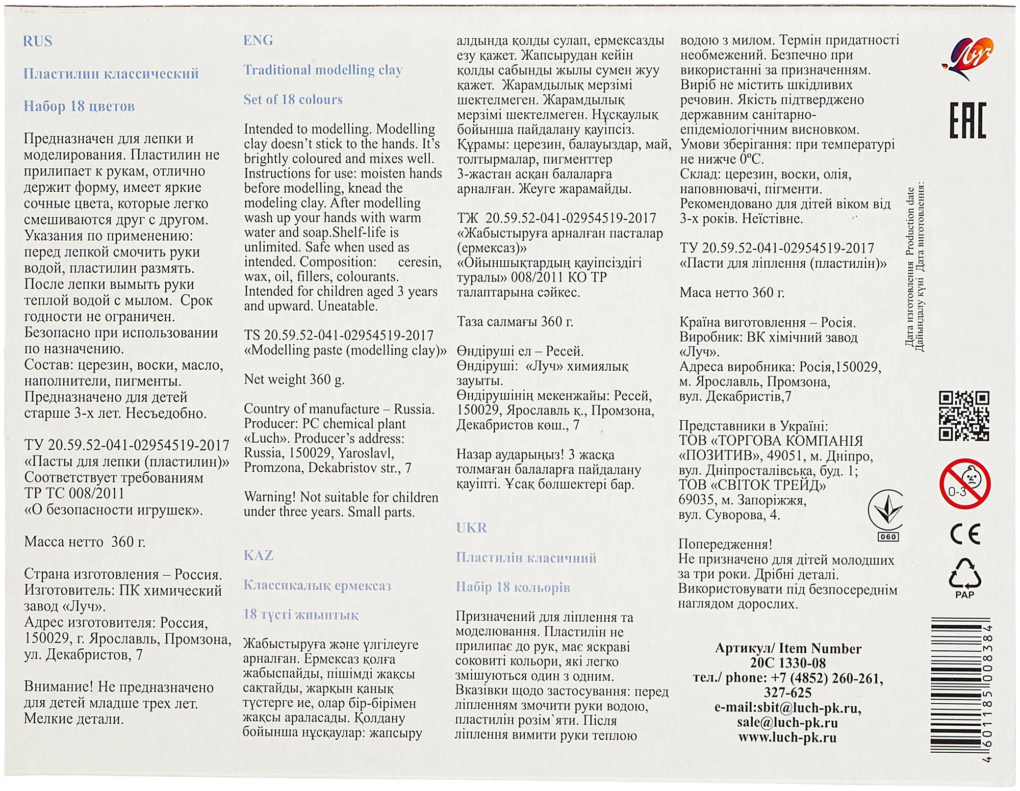 Пластилин для лепки и моделирования изготовлен из нетоксичных материалов, является безопасным в использовании.